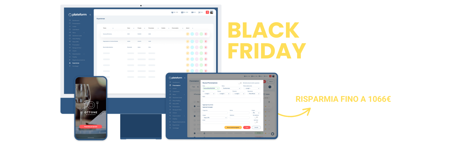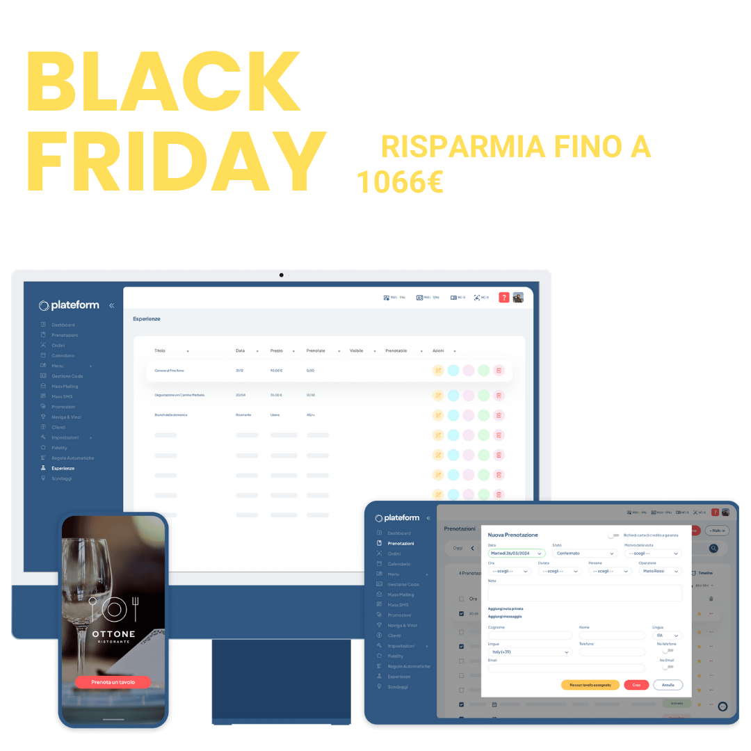 Invita i clienti alle tue serate a tema o percorsi di degustazione particolati con grafiche perfette ed accessi esclusivi. Fai sentire i tuoi clienti importanti e riempi la sala in automatico.
